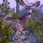 Mule deer navigating desert washes
